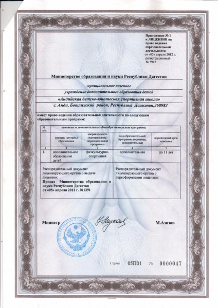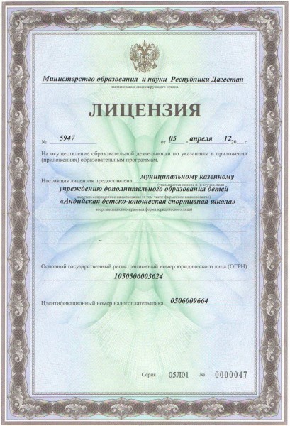 Полное наименование образовательной организации* Муниципальное бюджетное учреждение дополнительного образования "Андийская детско-юношеская спортивная школа" муниципального района "Ботлихский район"